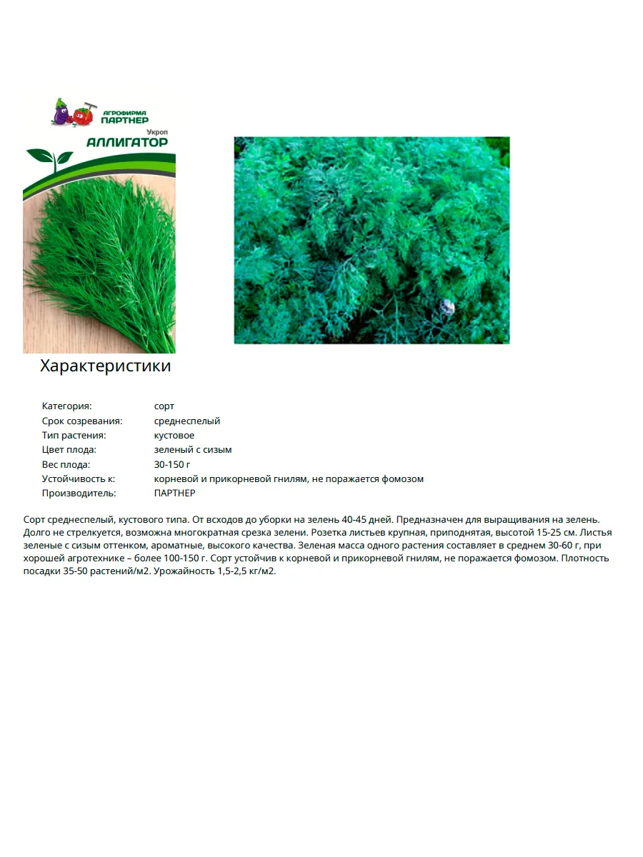 Сорт укропа аллигатор характеристики