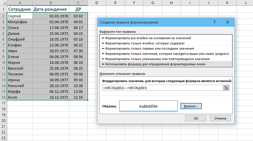Сортировка в эксель по дате рождения