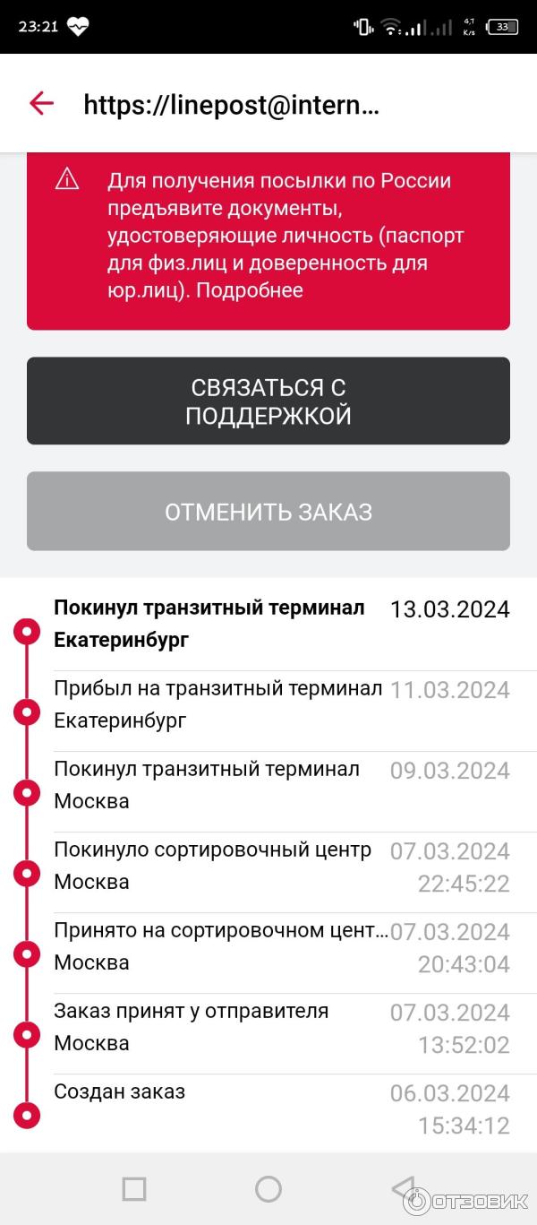 Обработка покинуло сортировочный центр