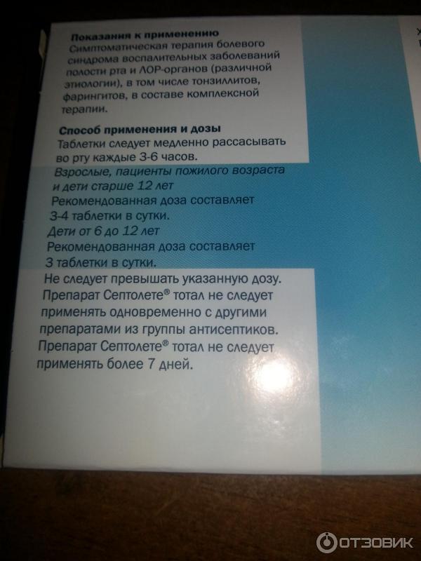Септолете - инструкция к применению, описание препарата и показания к применению .