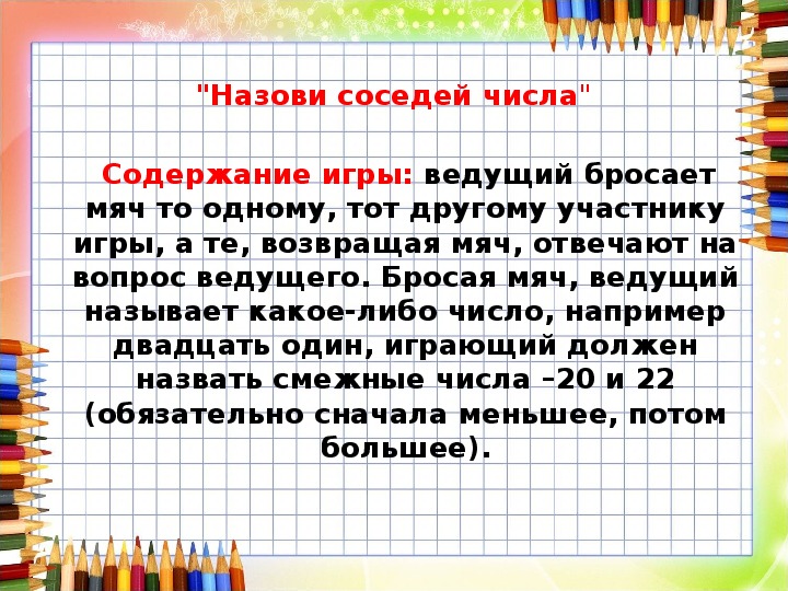 Соседи числа цель игры