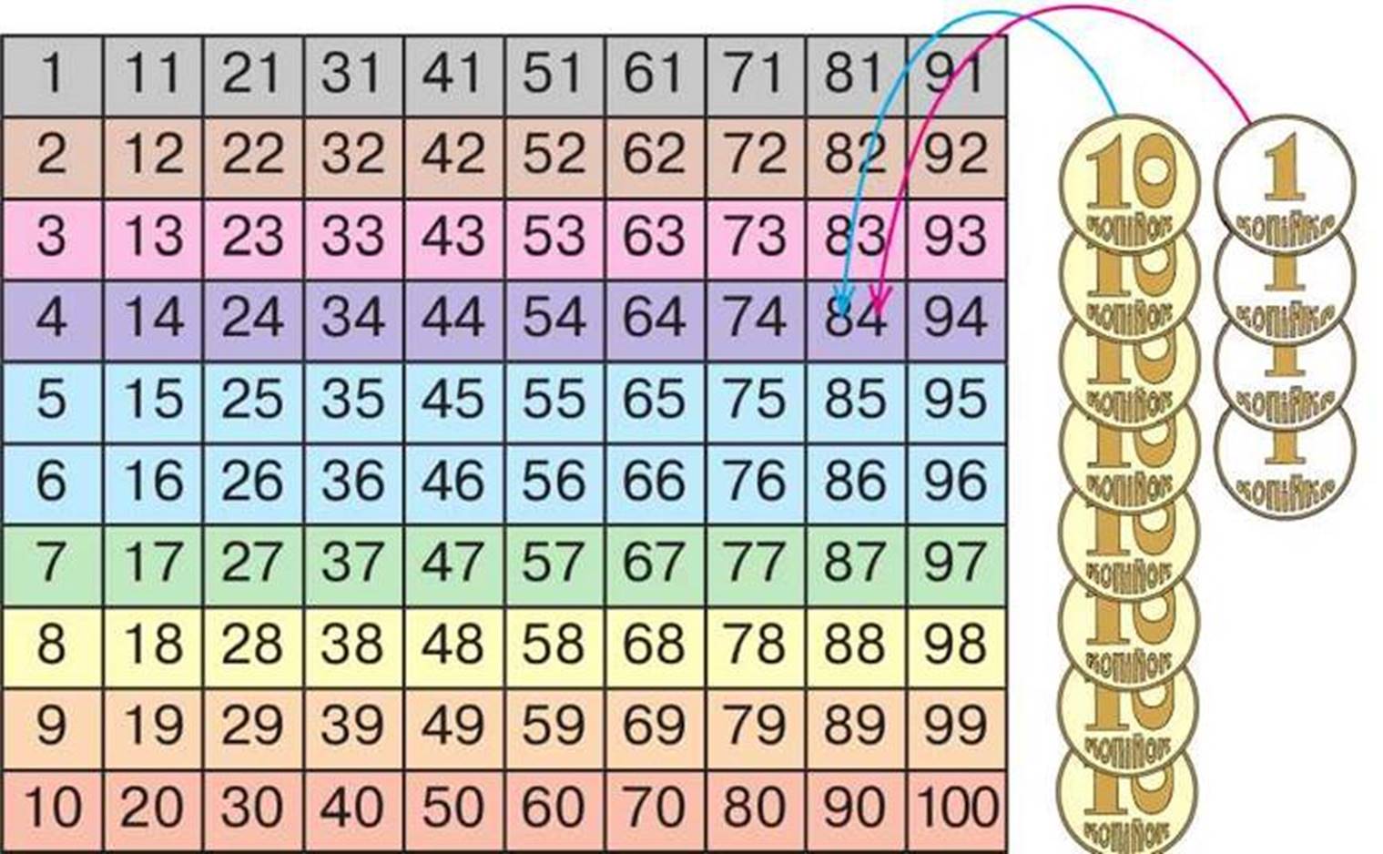 Составь чисел до одного до 100