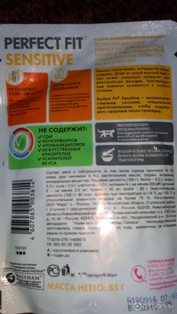 Состав корма perfect fit