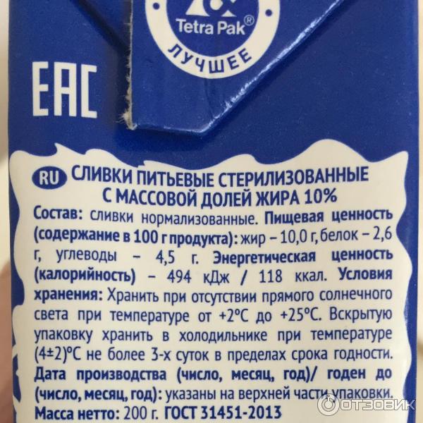 Состав молочных сливок 135 фото