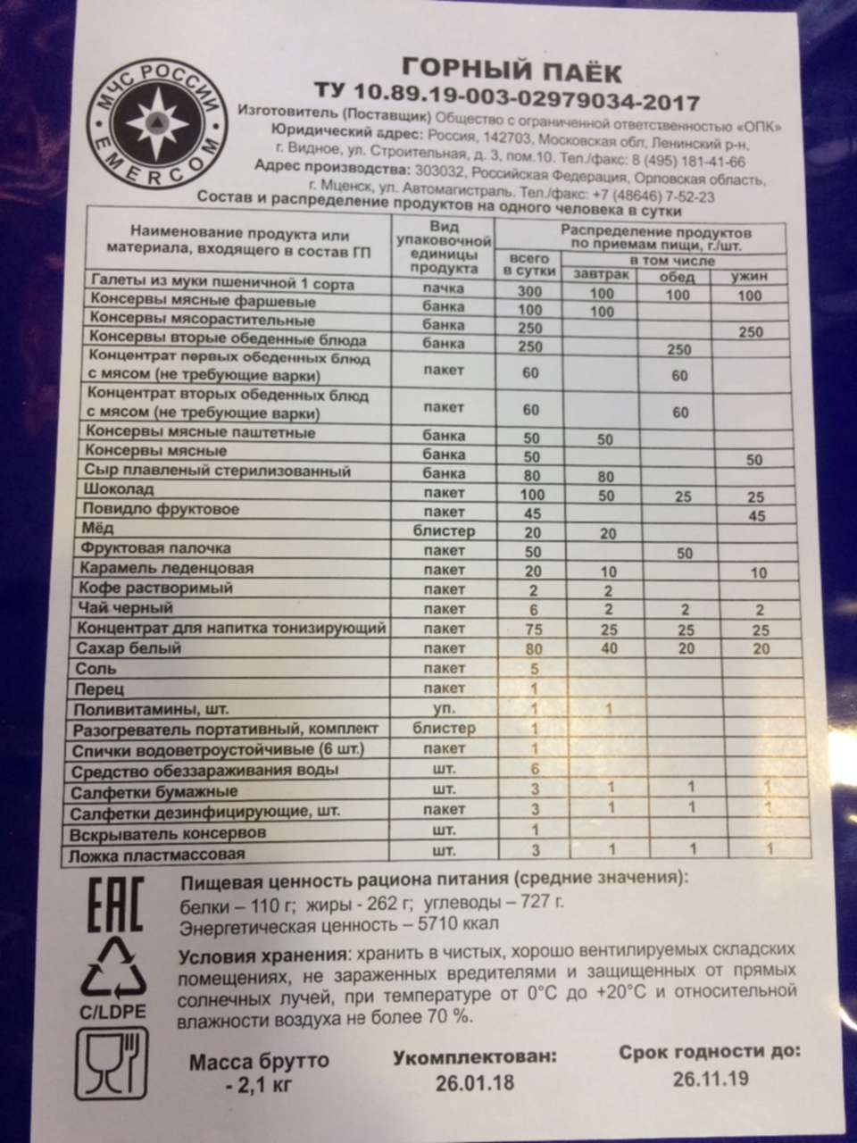 Состав пайка 1