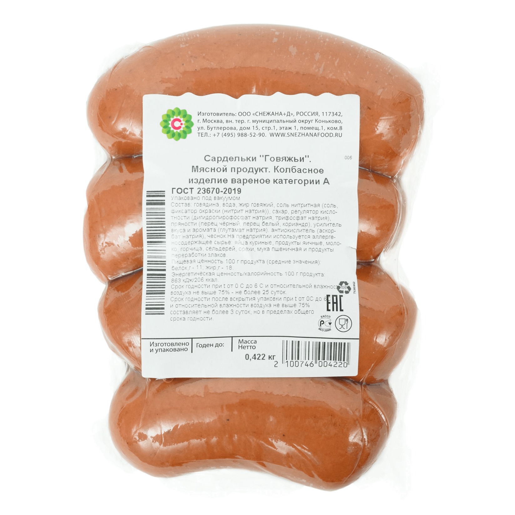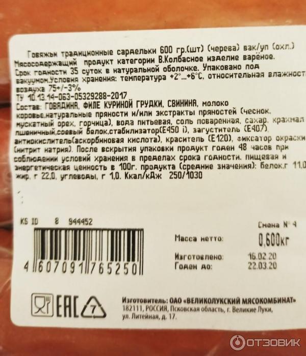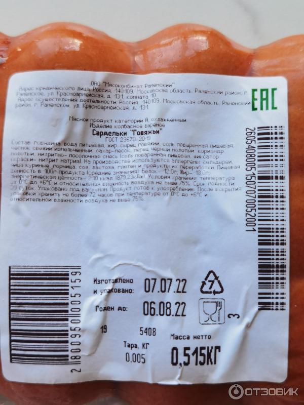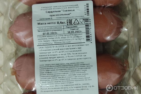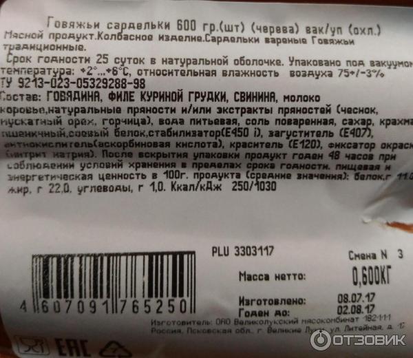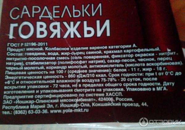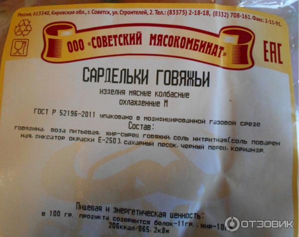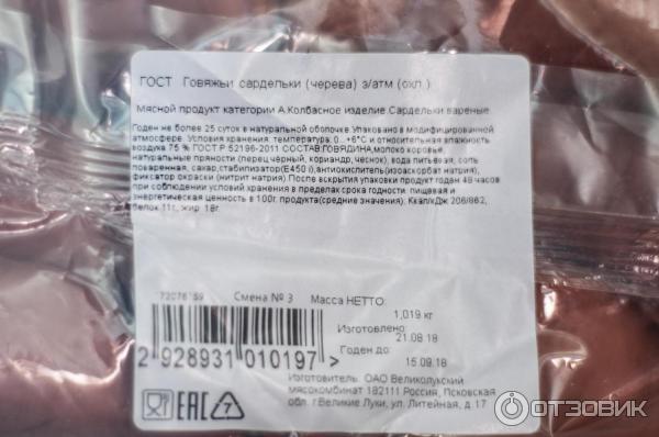 Состав сарделек говяжьих