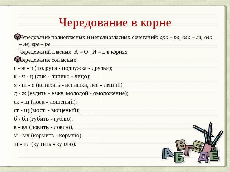 Состав слова чередование