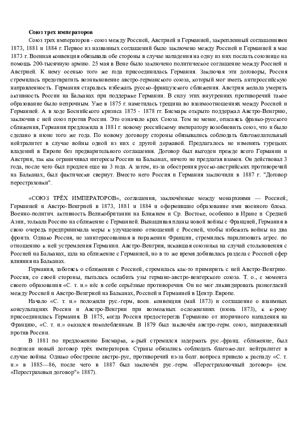 Состав союза трех императоров