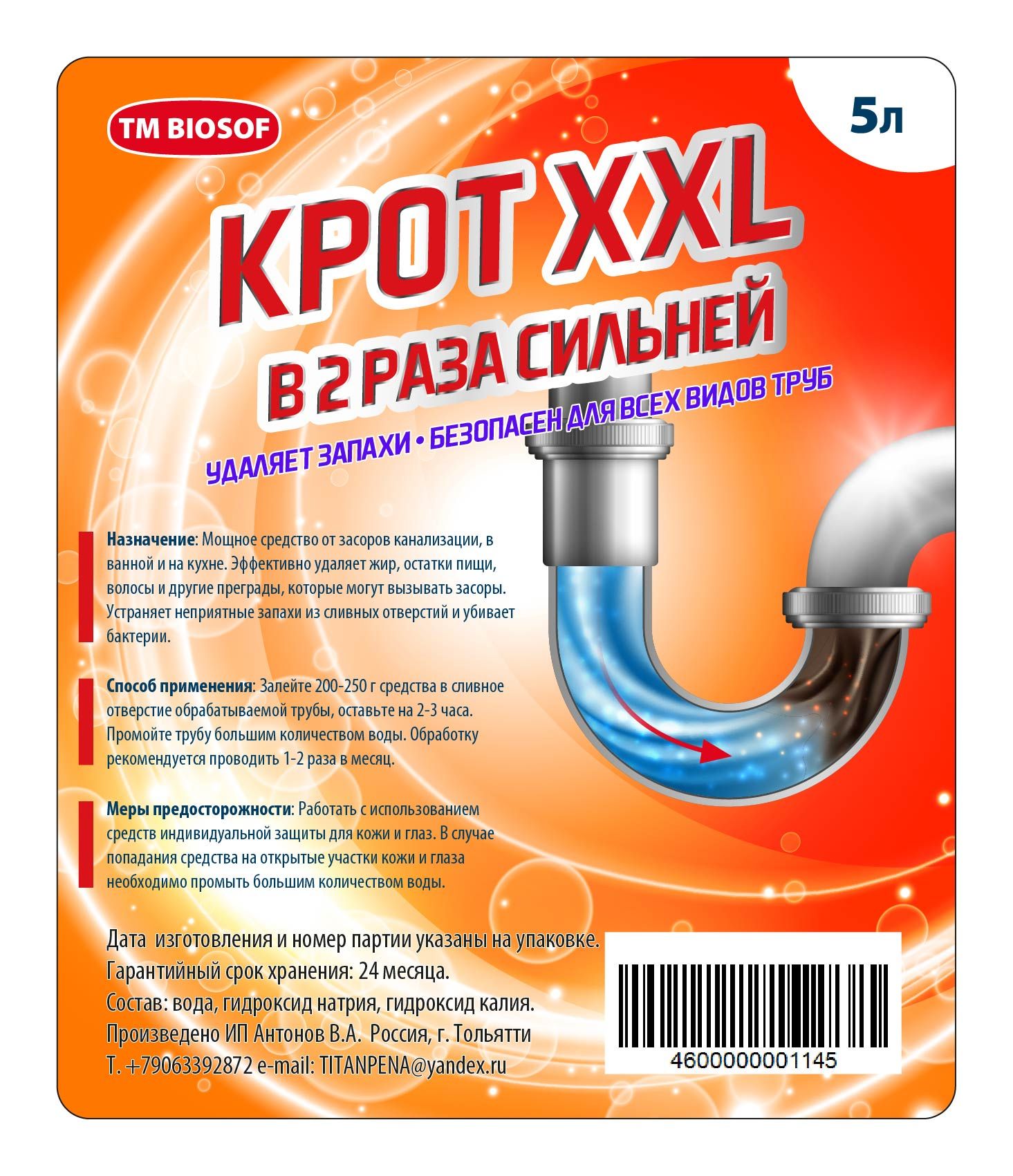 Состав средства крот для труб