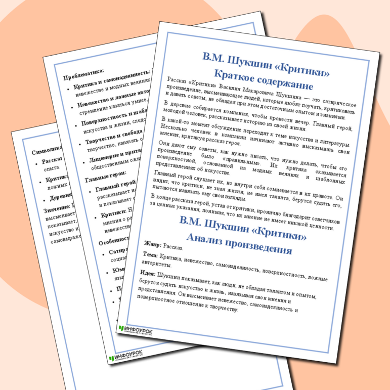 Составить план рассказа критики