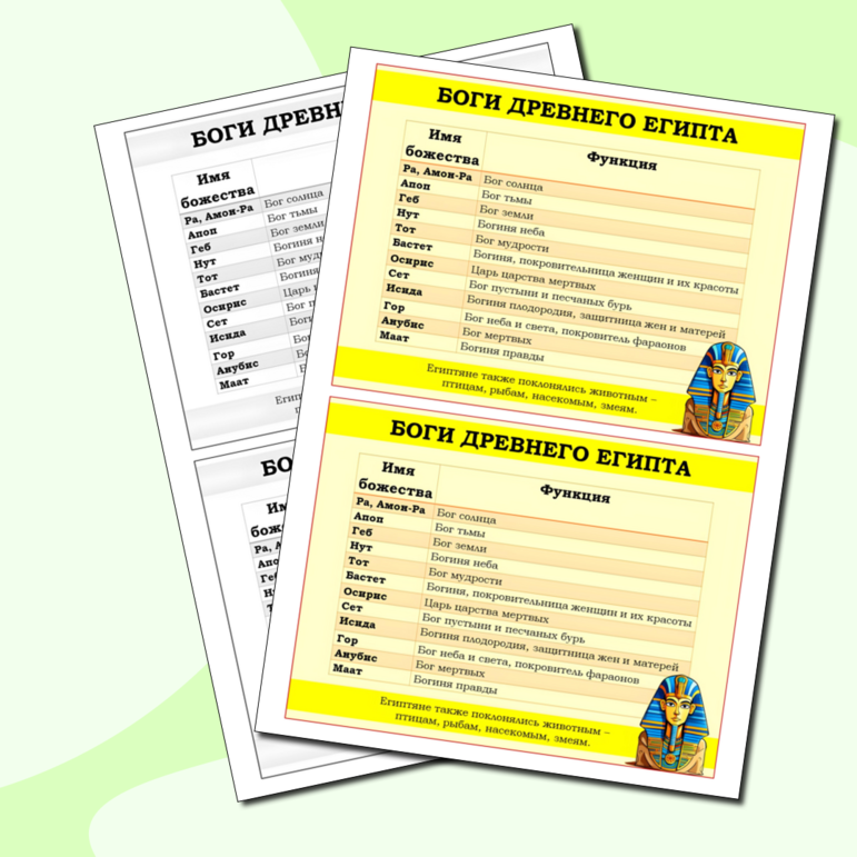 Составить таблицу боги египта 5 класс