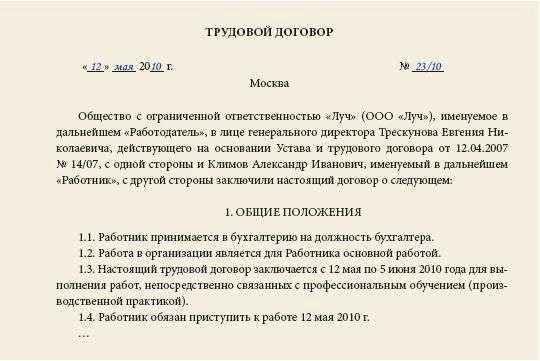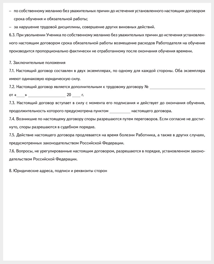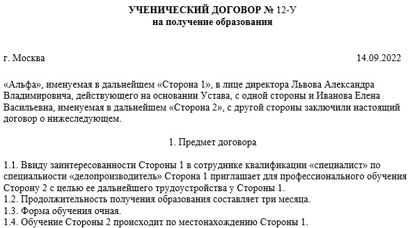 Составить ученический договор