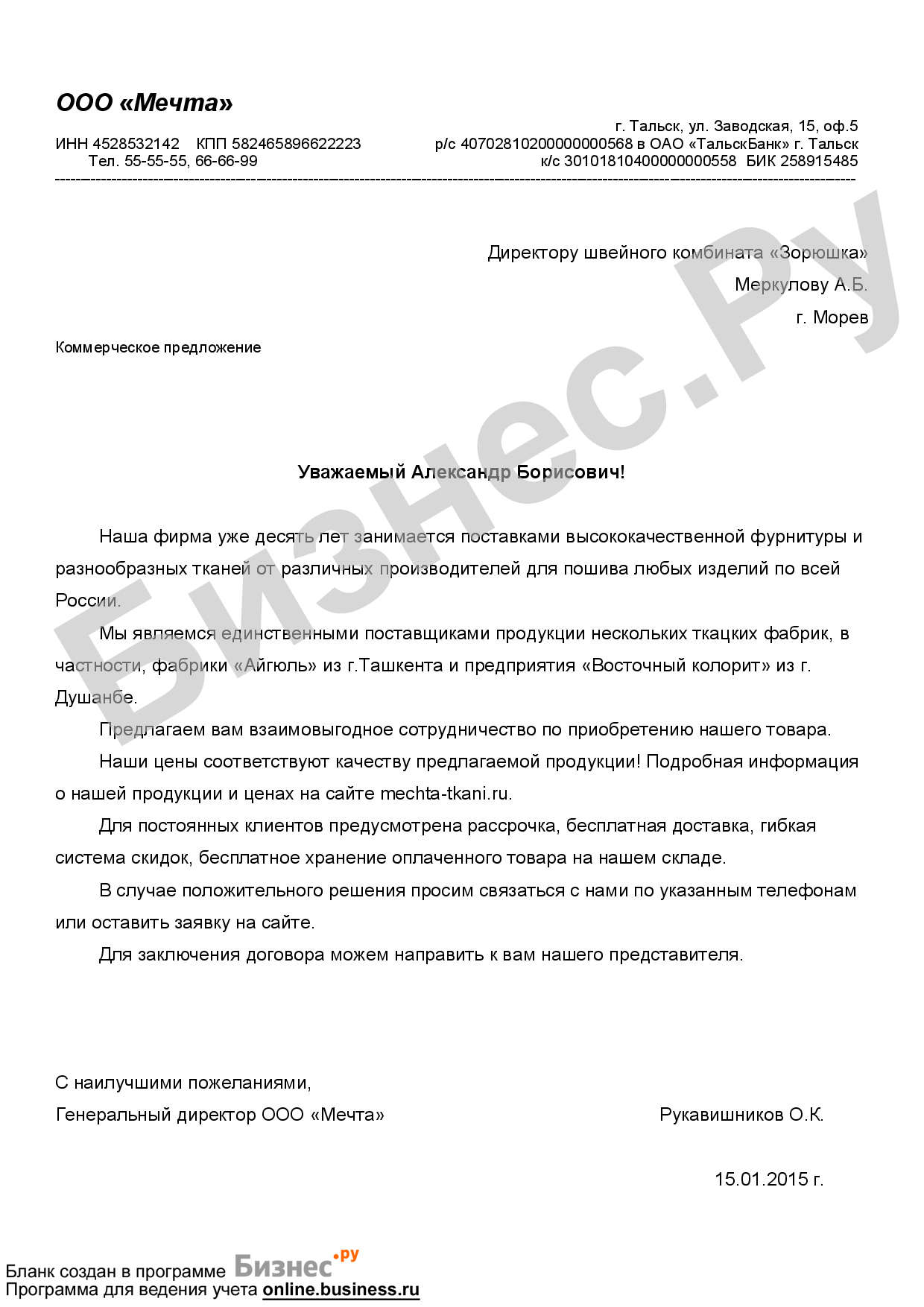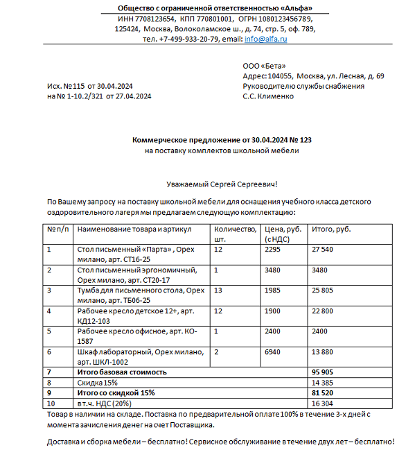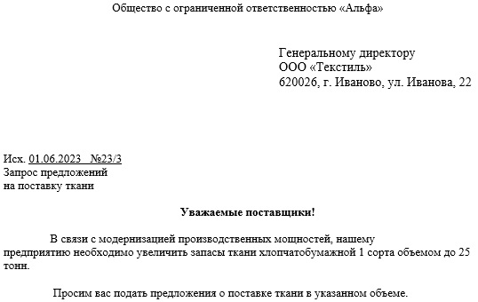 Составить запрос коммерческого предложения