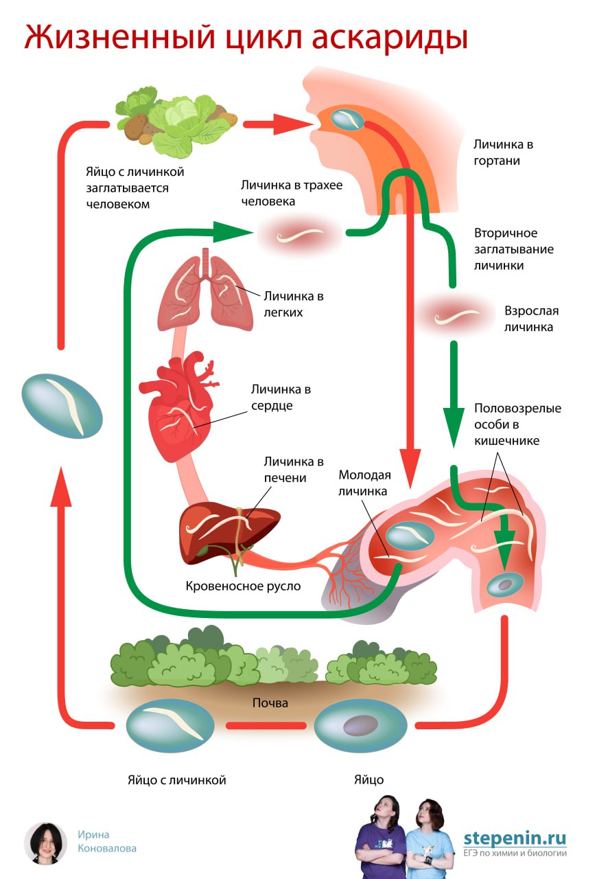 Составьте план о жизненном цикле аскариды