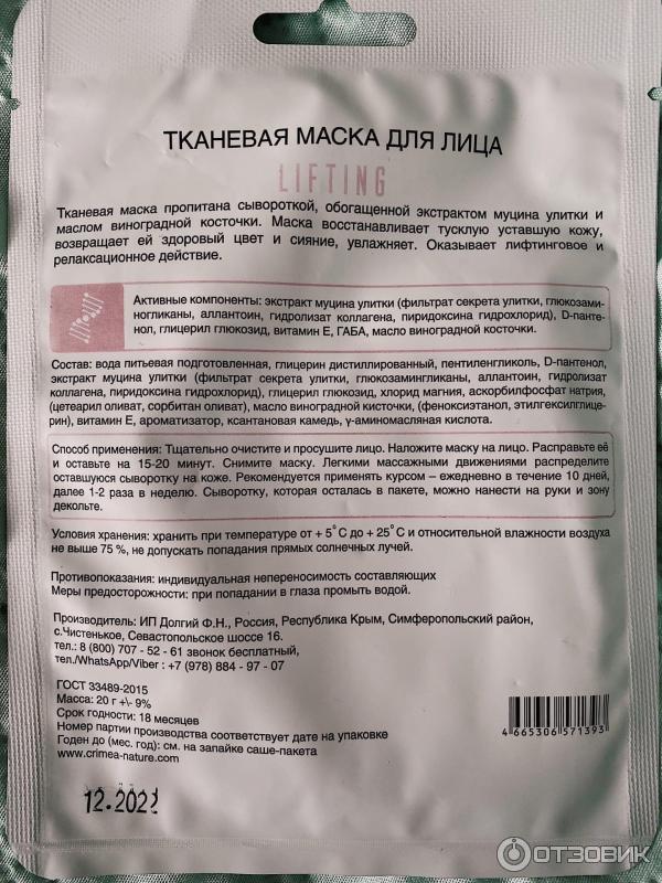 Составы тканевых масок для лица