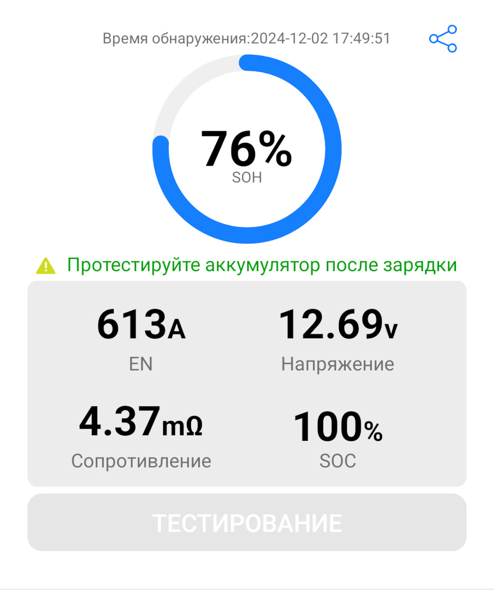 Состояние аккумулятора 78