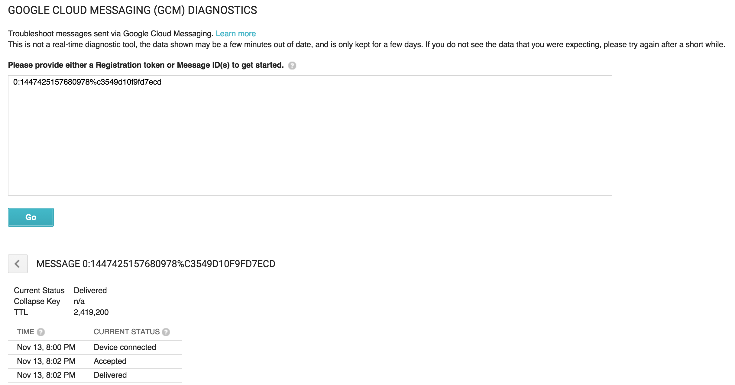 Состояние сообщения отправлено