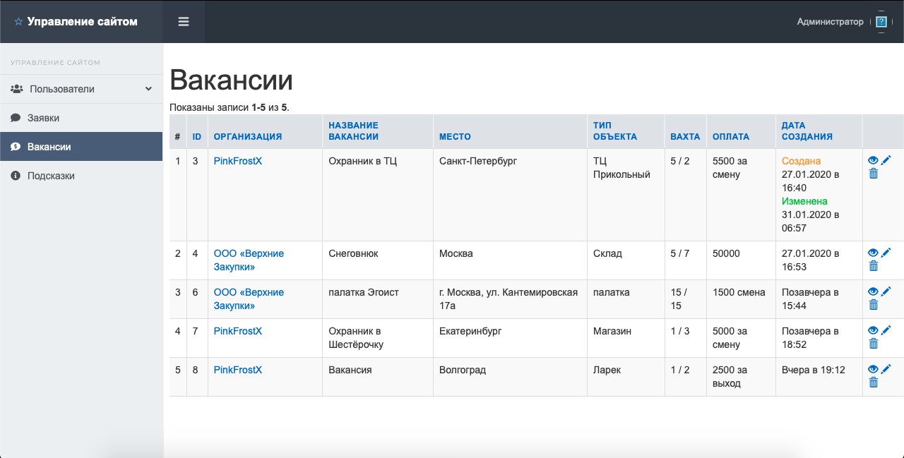 Сотка админка