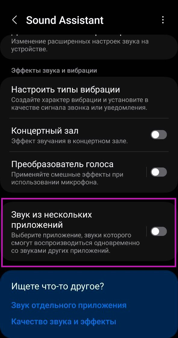 Листаем в самый вниз и выбираем «Звук из нескольких приложений».
