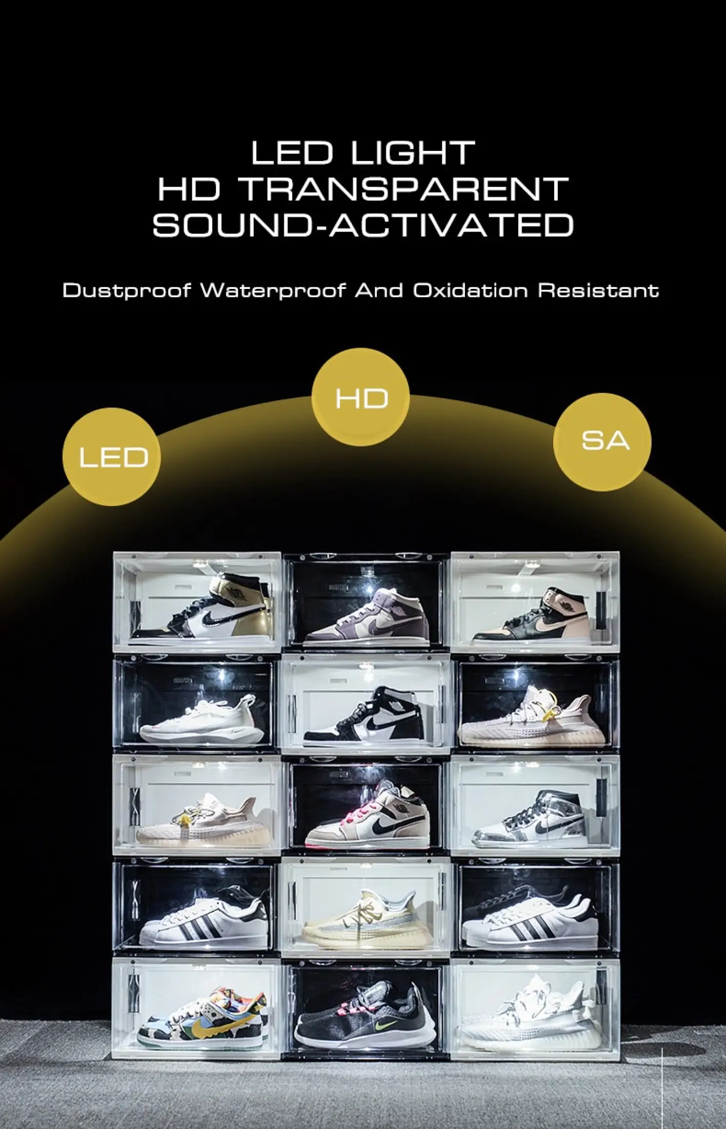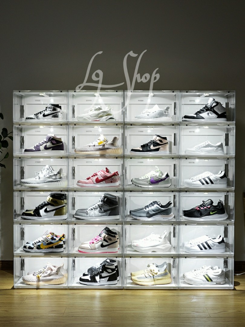 New Sound Control LED Light clear Shoes Box Sneakers Storage Anti-oxidation Organizer Shoe Wall Collection Display Rack 2844 Q2 CAD $25 .04 - 51 .01 / Piece New Full Transparent Shoe Box Acrylic Shoes Storage Dust Proof Display Sneakers Box Organizer Can Be Stacked Plastic Container 210315