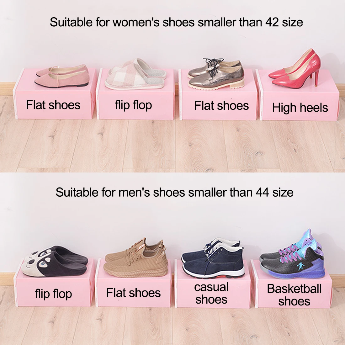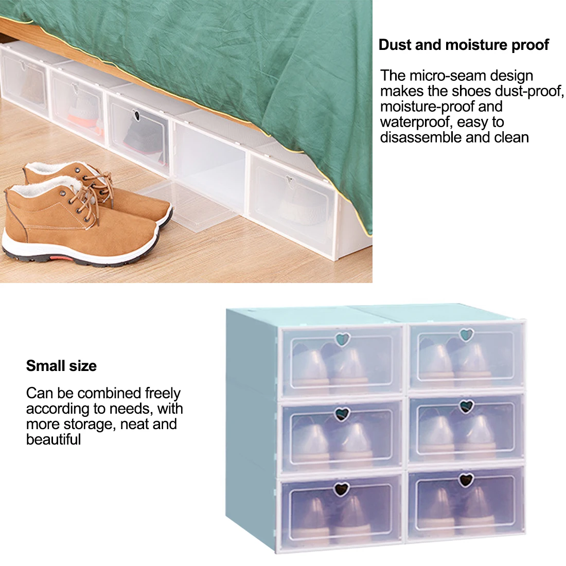 Those shoe box storage can be used in living room, bedroom, dorm room, underbed etc . High-load-bearing Shoe Box : With high quality PP and remarkable constructions, this shoe box is sturdier and more durable than others, it can protect your shoes from dust and water .