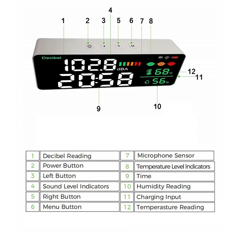 YheKRjAGxЗдесь вы сможете купить Sound Decibel Meter Wifi Wall Mounted Sound Level Meter Digital Clock Temperature Humidity Meter, 30-130DBA DB Meter с бесплатной доставкой до вашего почтового отделения.