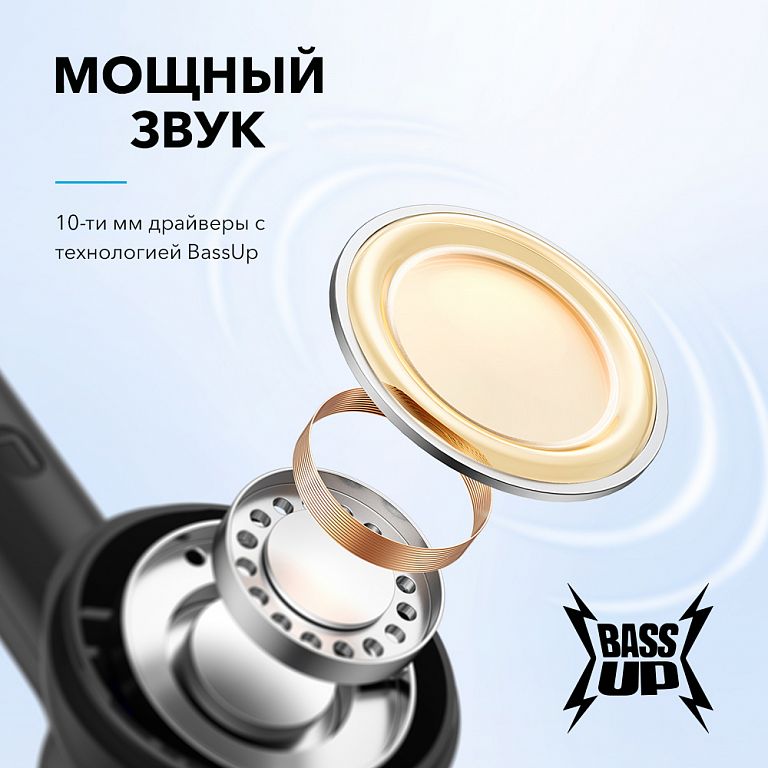 Soundcore R100 True Wireless Earbuds . A budget model that will become the most affordable solution in the Anker line . Despite the budget, the equipment is quite modern . Dynamic 10mm drivers complemented by BassUp technology for richer sound; the case is protected from moisture ingress IPX5; autonomy 6 .5 hours + 25 hours in a case, fast charging . . .