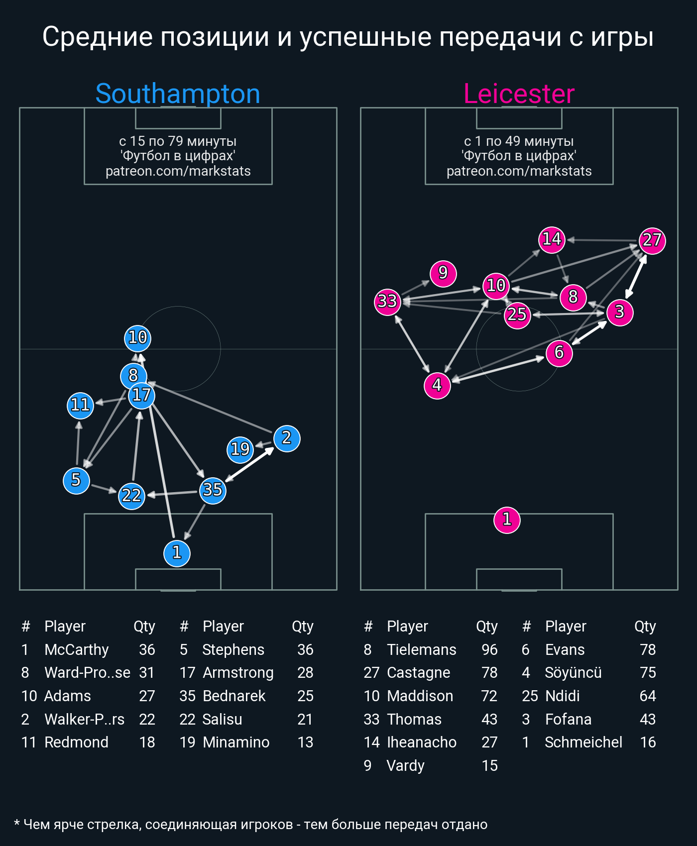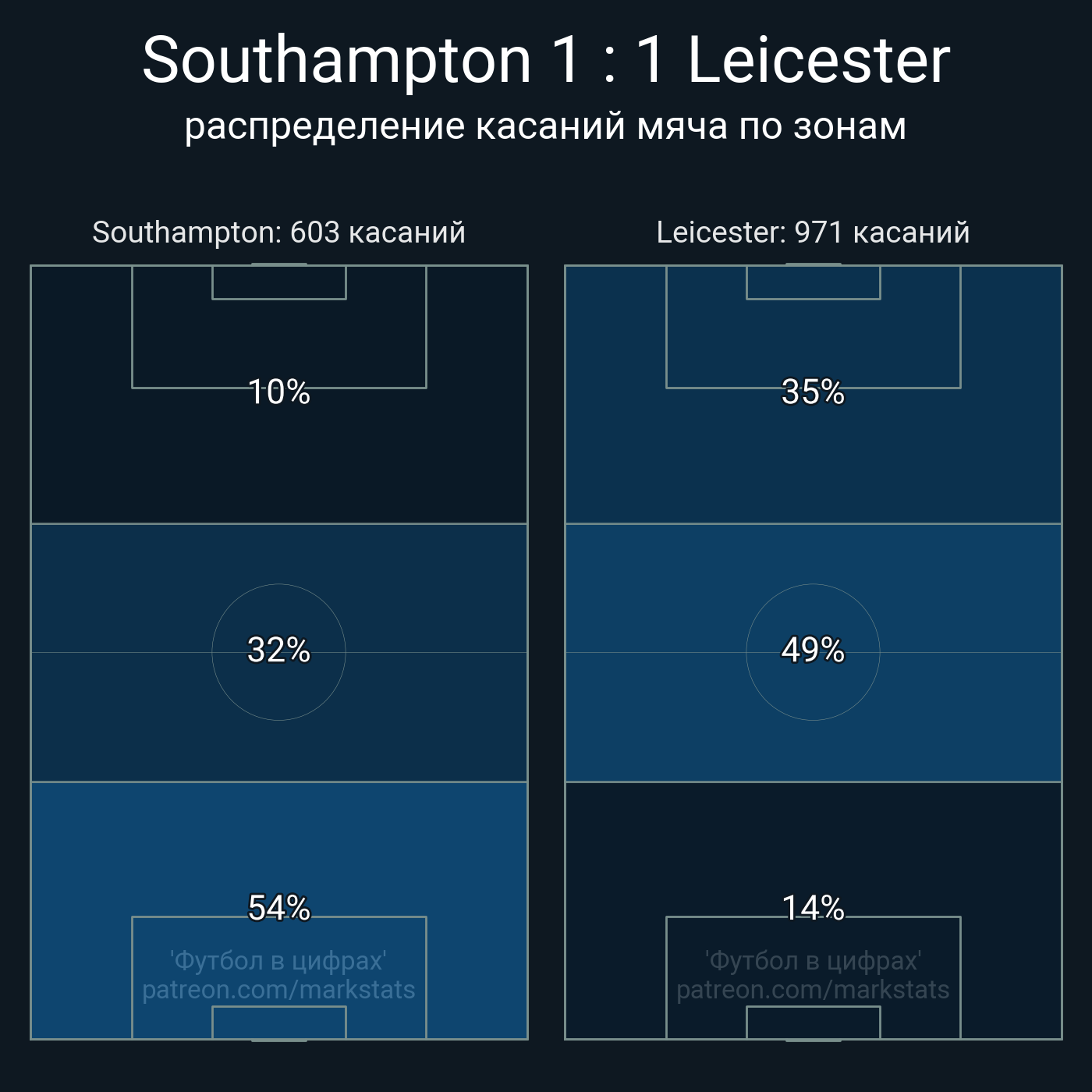 Футбол в цифрахСтатистика матча Southampton - Leicester