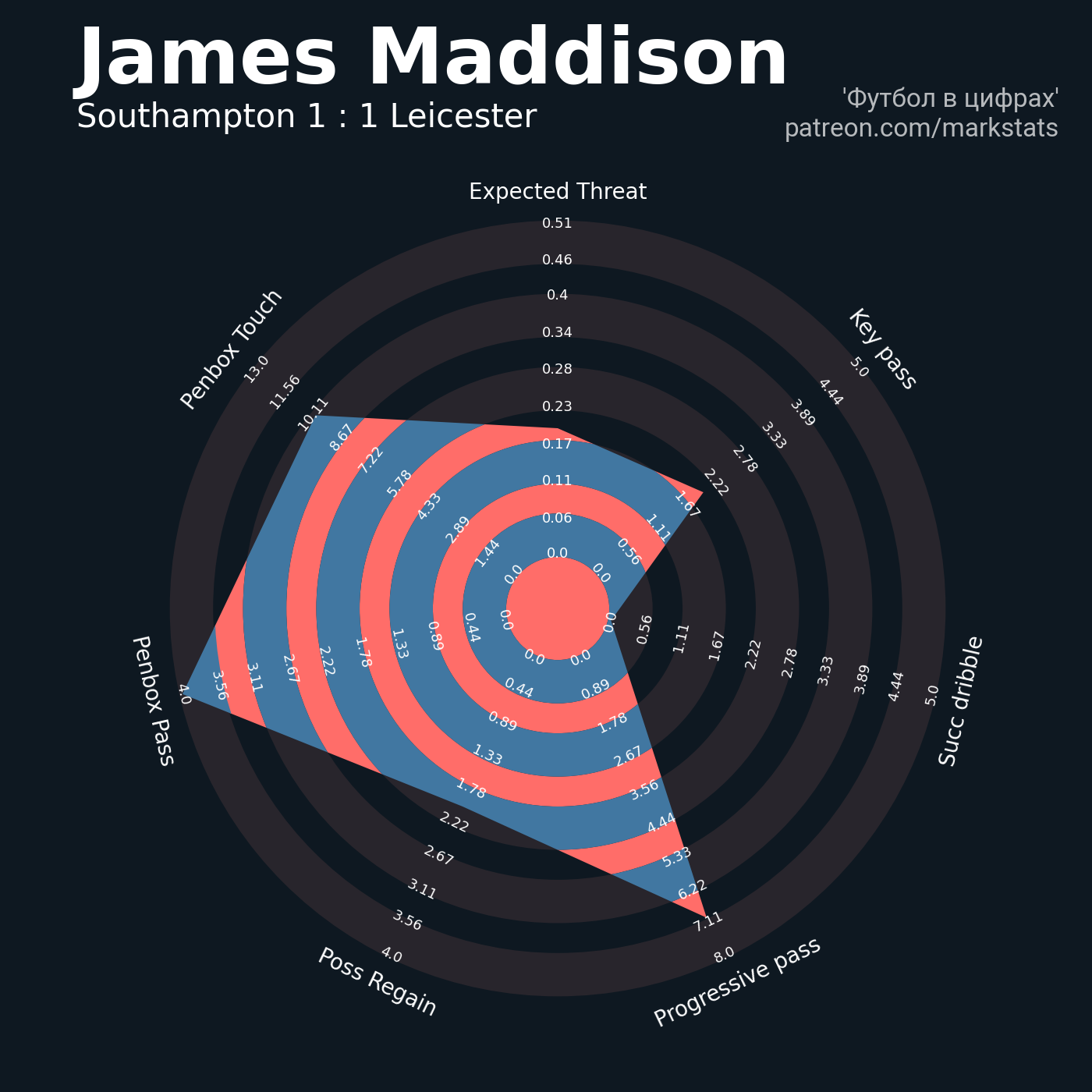 ▪ 0.51 очка xT (+0.0 со стандартов)