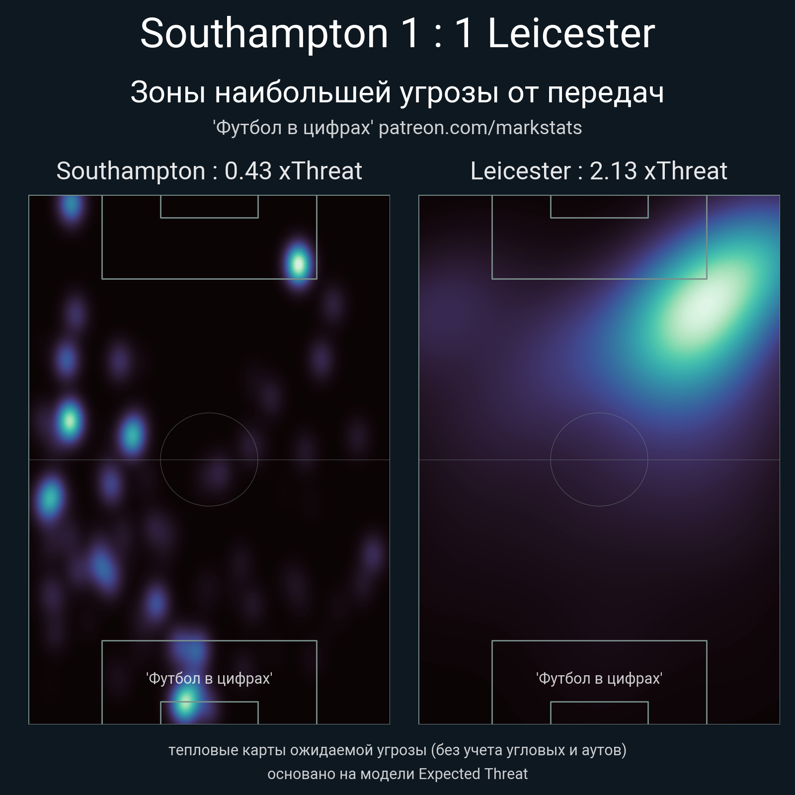 ▪ xThreat без учета угловых: 0.43 - 2.13