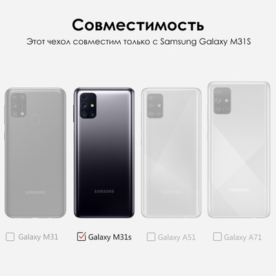 Совместимость . Подходит прозрачный противоударный чехол для Samsung Galaxy A51 2020 (SM-A515) во всех модификациях . Не мешает поклейке скрин протектора и подключению периферии .