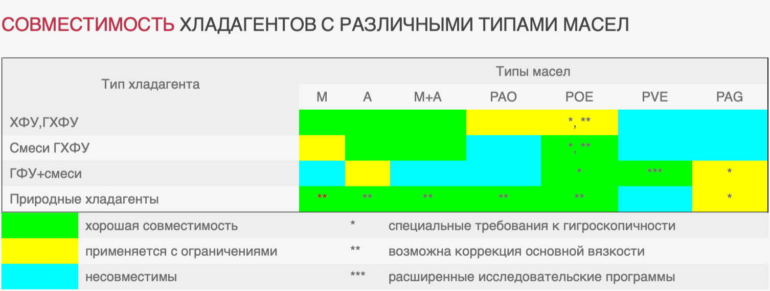Совместимость хладагентов