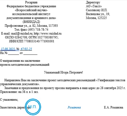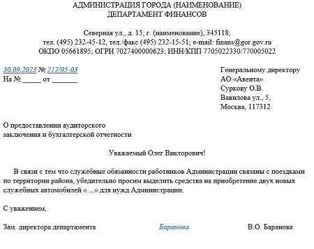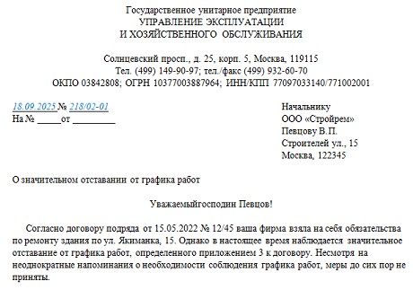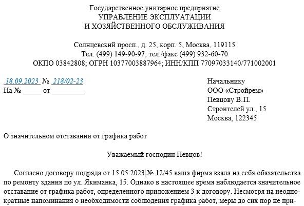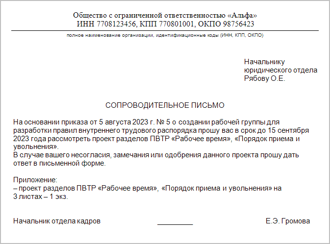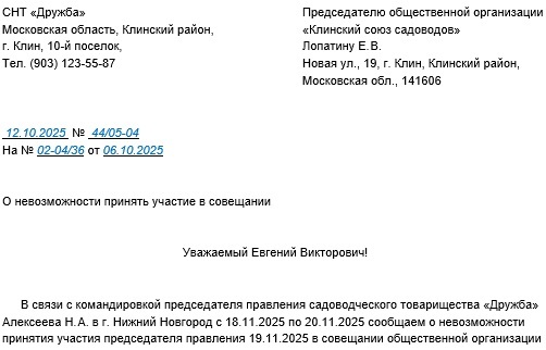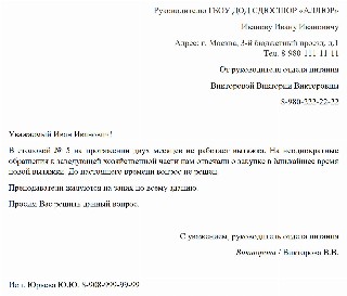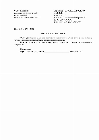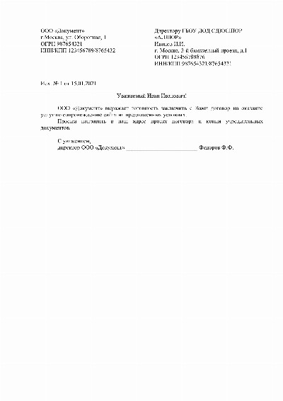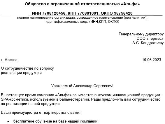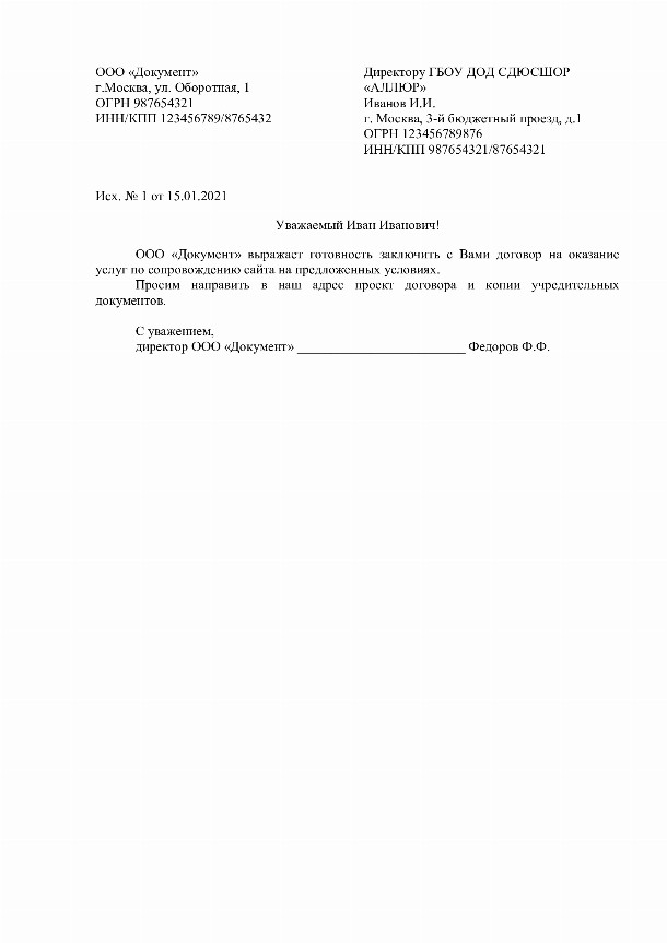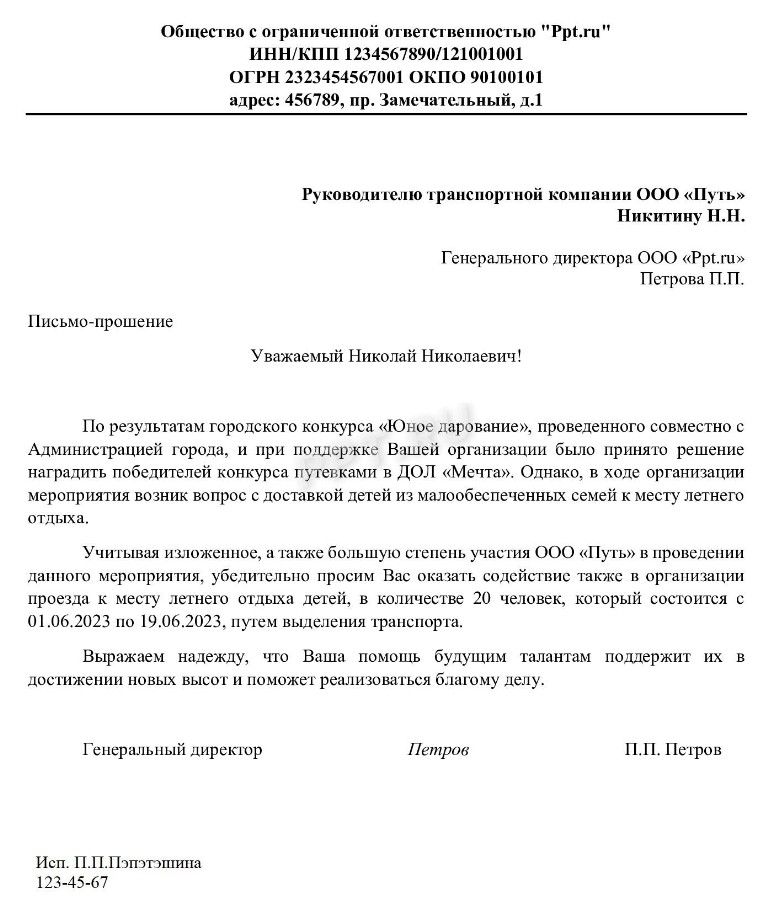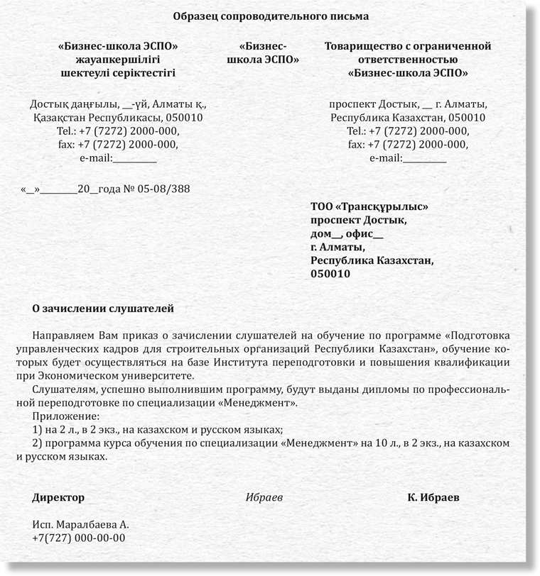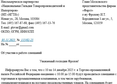 Совместное письмо образец