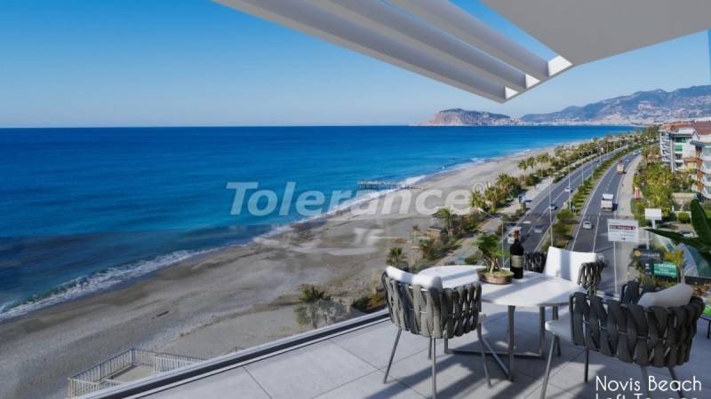 Фиктивный 3D рендеринг современной гостиной с видом на море, рисунок в рамке сделан мной