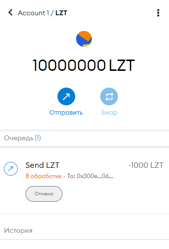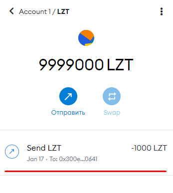 Как видим токены успешно перевелись на другой адрес.