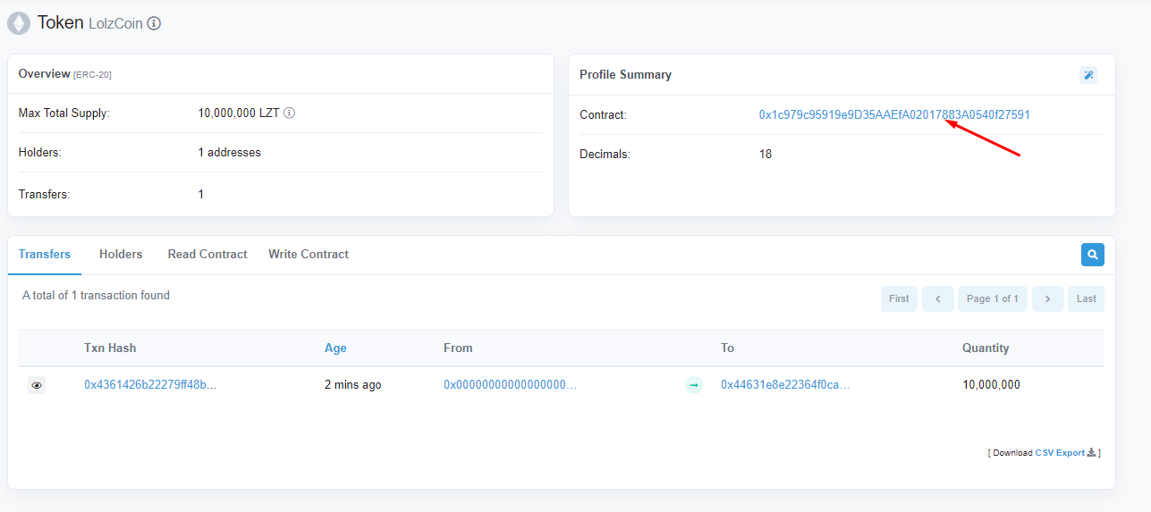 Копируем адрес контракта -