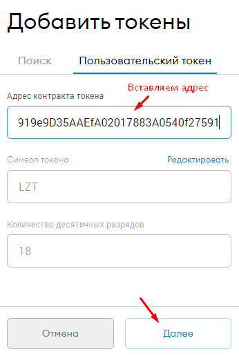Вставляем адрес контракта -