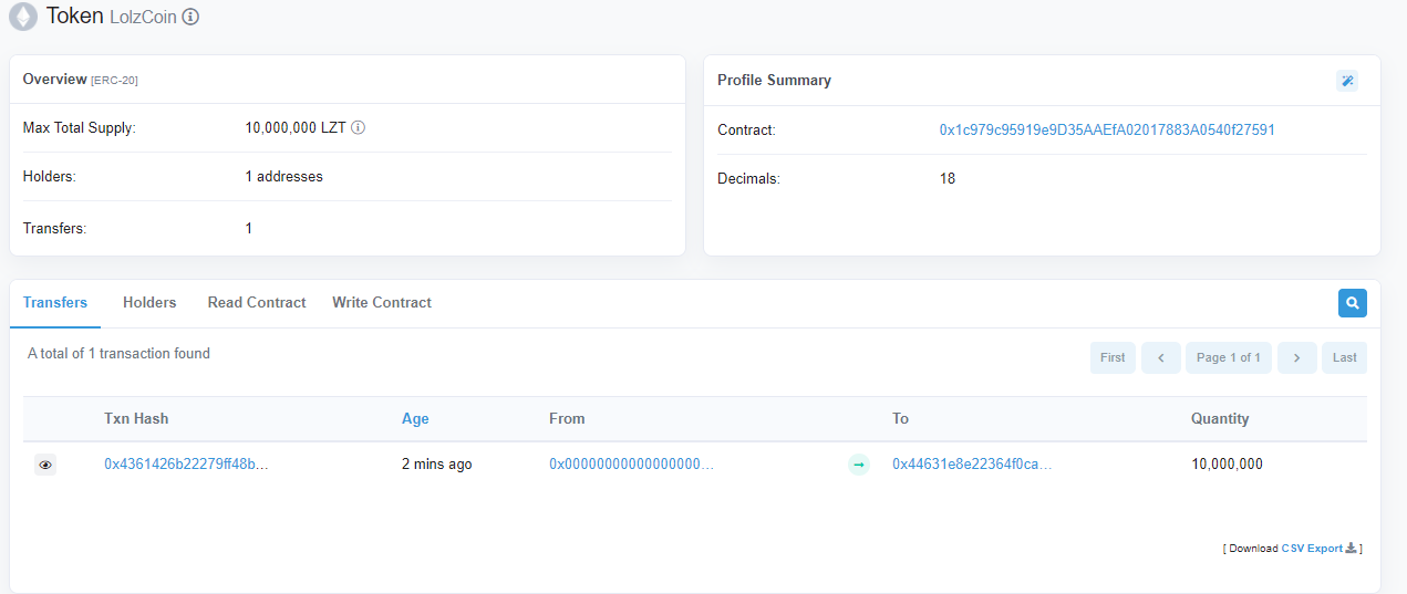 Пример - https://rinkeby.etherscan.io/token/0x1c979c95919e9d35aaefa02017883a0540f27591