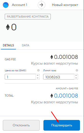 Оплачиваем контракт за тестовые монеты -