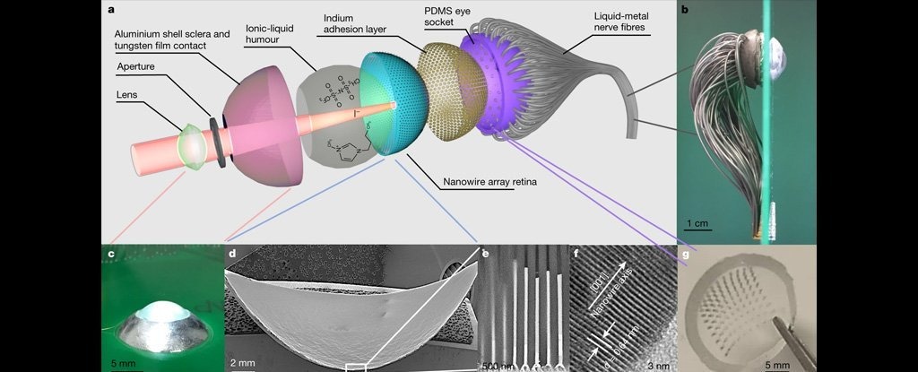 Исследователи из Университета Гонконга разработали полусферическую искусственную сетчатку диаметром всего два сантиметра, усеянную нанопроводами из перовскита, перспективного материала, который широко используется в производстве солнечных элементов. Всего их 460 млн на кв. см, то есть в 46 раз больше, чем у человека. В теории это может позволить в будущем получать более четкое изображение, чем способен считывать человеческий глаз.