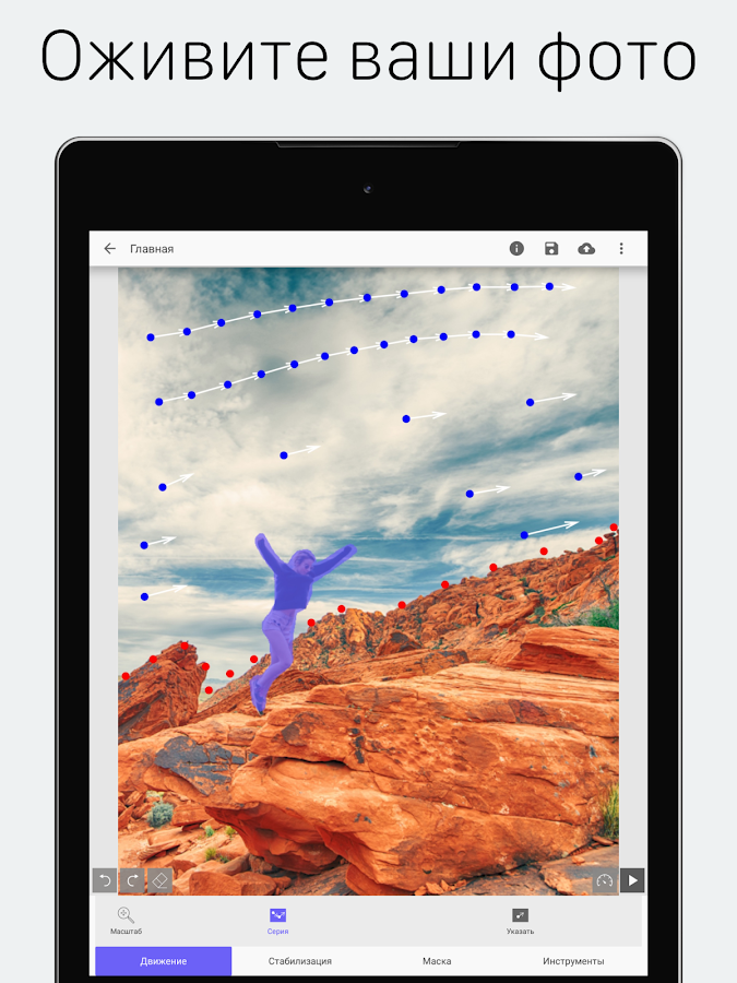 Приложение для создания фотографий в движении из видео . Нужно выбрать область видео, которая будет двигаться, настроить резкость Реставрируйте старые фотографии: оцифруйте бумажные снимки, загрузите в программу, а затем уберите царапины, шум и следы сгибов . . .