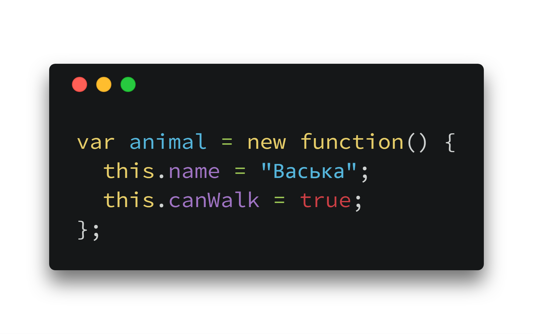Теперь многократными вызовами new Animal с разными параметрами мы можем создать столько объектов, сколько нужно. Поэтому такую функцию и называют конструктором – она предназначена для «конструирования» объектов.