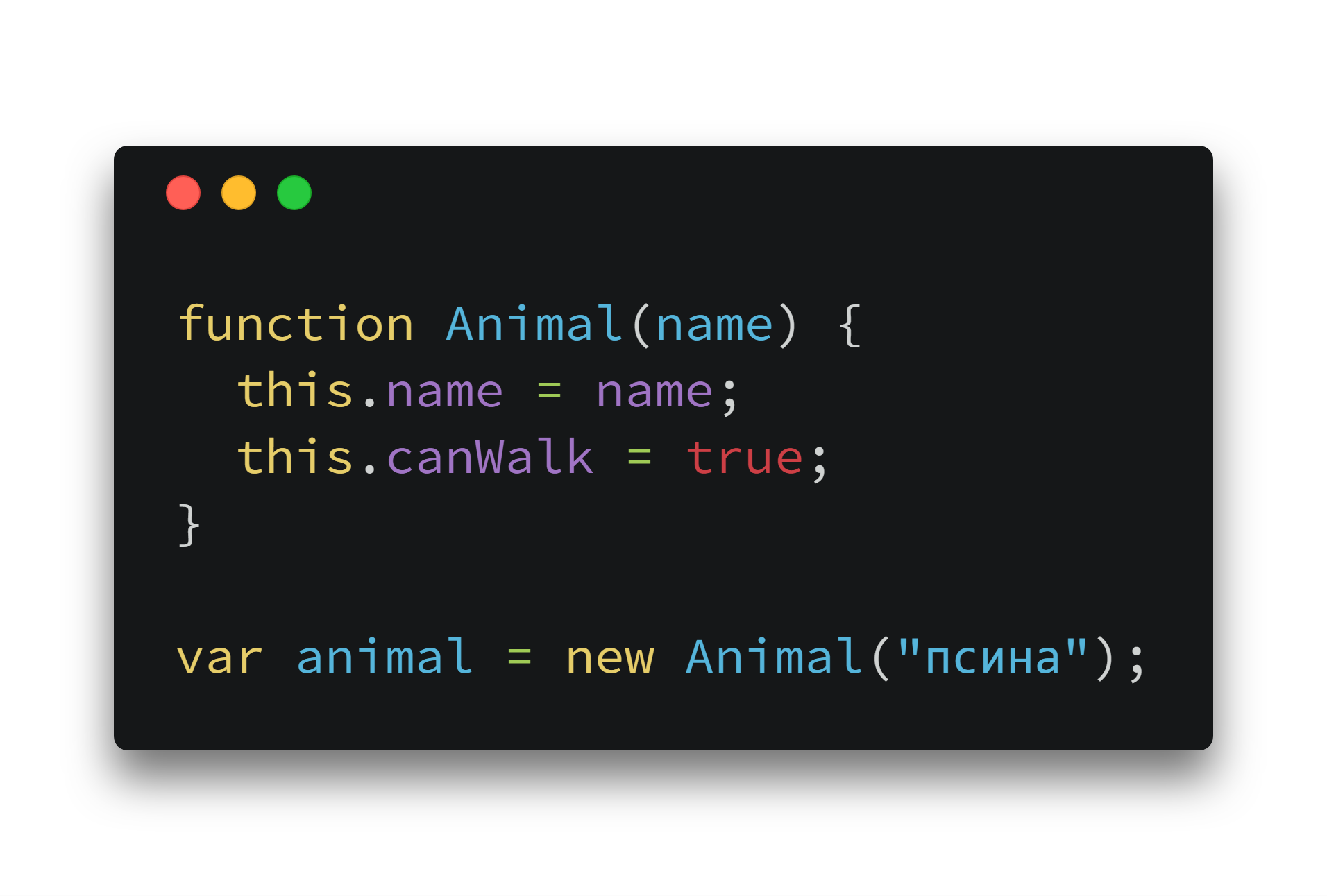 В результате вызова new Animal("псина"); получаем такой объект: