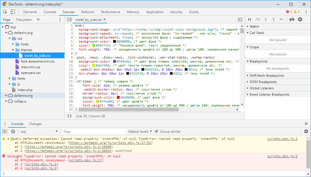 - Заходим во вкладку Sources