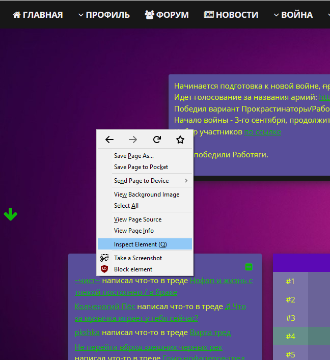- Переходим на любую страницу дофамина и жмем ПКМ -> Inspect Element