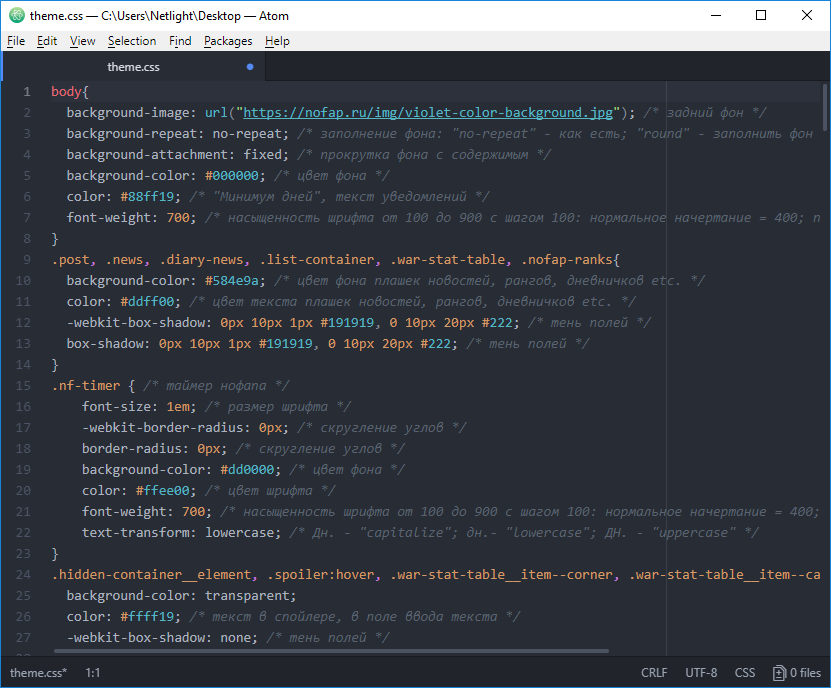 - Выбираем название_темы.css и вуаля! Приступаем к работе!