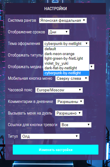 В настройках дофамина выбираем cyberpunk-by-netlight