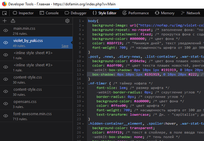 - Страница перезагрузится и когда вы снова откроете css-файл, то текст будет на русском!