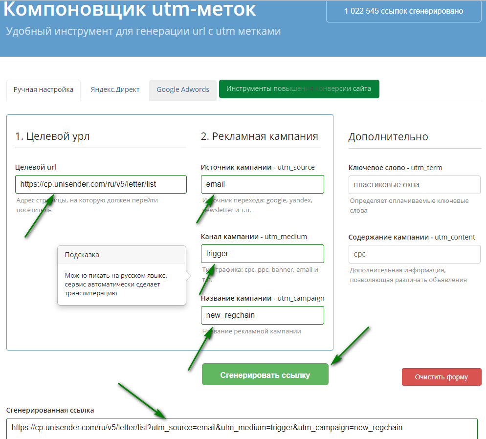 Создание ютм