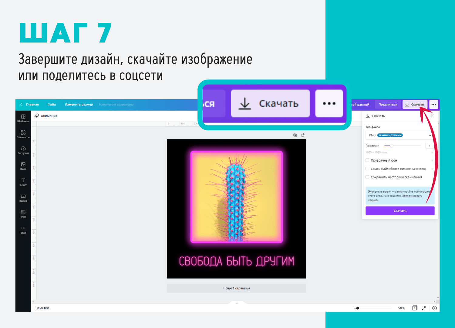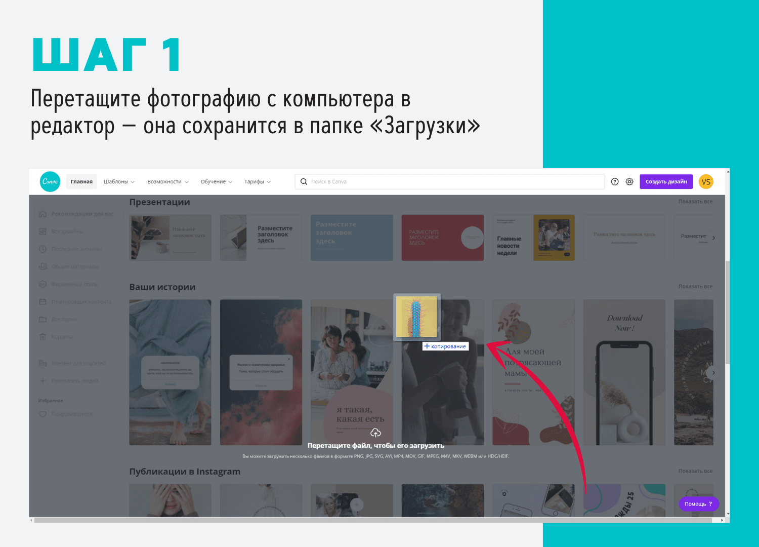 Чтобы добавить к фото неоновую рамку онлайн на компьютере, для начала зарегистрируйтесь в бесплатном графическом редакторе Canva — это займет считанные минуты . Затем следуйте инструкции ниже . Шаг 1 . Загрузить фото Перетащите фотографию с компьютера в редактор — она сохранится в папке «Загрузки» .